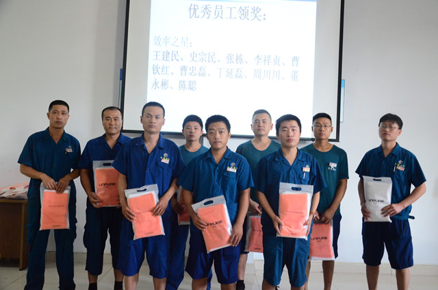 会上,上榜花布车间7月份效率之星、质量之星、标准之星等优秀员工受到表彰奖励。效率之星19名,他们是:王建民、石宗民、王曙光、张磊、张栋、李祥贞、曹钦红、赵文博、张海涛、李志伟、张颂超、曹忠磊、丁延磊、王强强、孙京涛、陈丁丁、周川川、董永彬、陈聪;质量之星17名,他们是:李文超、于彦军、于存元、封乐、蒋洪飞、李青峰、张彤、牟海飞、张丰霞、张金玲、王海波、姜斌、孝本亮、郭晓峰、赵惠惠、高同祥、王雪峰;标准之星7名,他们是:王景超、韩海军、贾风光、张凯、任红红、张新华、杨志苹。