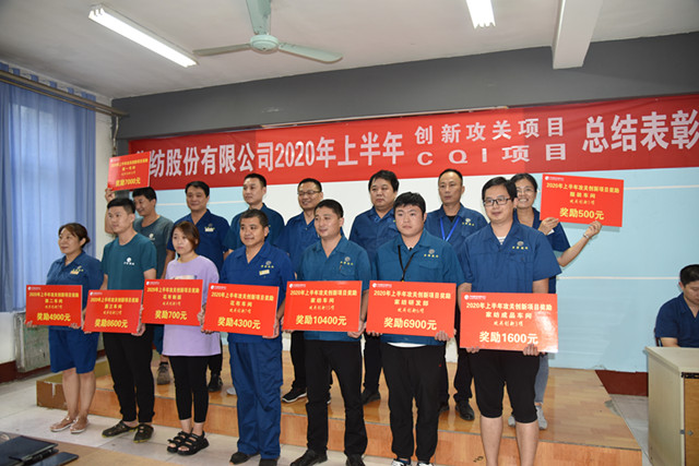在CQI项目改进方面,公司展开CQI项目共计15项,在7项完成并受奖的项目中,4项超目标完成,实现收益303.8万元。其中,花布车间完成并受奖的是“减少改浆,提高一次成功率”项目,面三车间完成并受奖的是“降低打底机疵布降等”项目、“提升5.11三防一等品率”项目,动力分公司完成并受奖的是“提高热油机组经济发电量”项目,水处理一车间完成并受奖的是“提高生化处理降低药剂成本”项目,水处理二车间完成并受奖的是“降低次氯酸钠吨水处理费用”项目,热力二车间完成并受奖的是“改善热水平衡提升换热效率”项目。