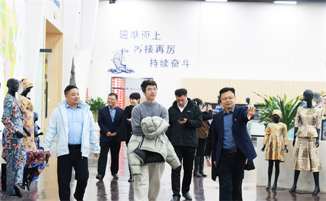 九识智能一行先后实地参观了公司智云中心、检测中心、综合办公区、服装面料公司、花布公司、家纺公司、创意中心、研究院、花布车间、立体库、家纺成品车间等区域,详细了解了公司在智能化生产运营、质量管控体系、研发创新平台及产业布局等方面的发展情况。
