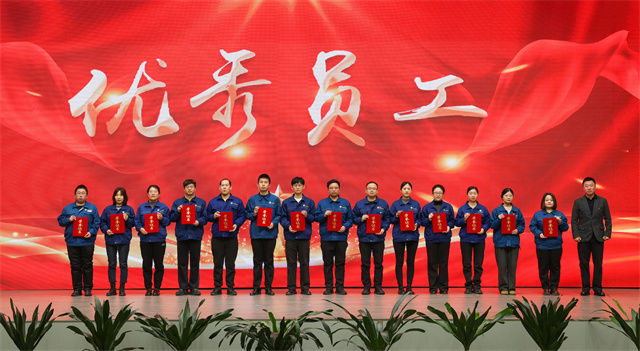 会议为2025年度退休员工举行光荣退休仪式。公司党委委员、纪委副书记、副总经理孙玉涛宣读退休员工名单,党委书记、董事长盛守祥为退休员工代表颁发荣誉证书。退休员工代表王立松作为退休职工代表发言,深情诉说数十载与公司同行的点滴,诚挚送上对公司的衷心祝福。