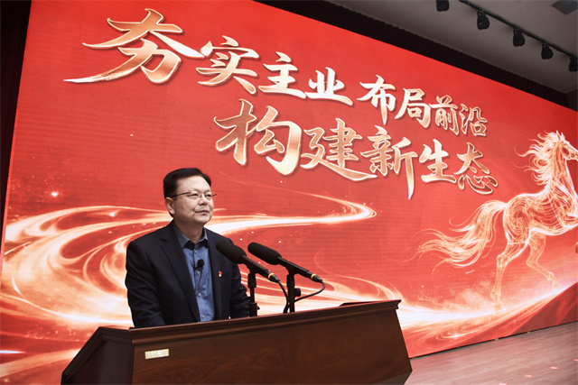 公司党委书记、董事长盛守祥发表题为《夯实主业 布局前沿 构建新生态》的讲话。讲话全面总结2025年工作成绩,深入剖析存在的问题与挑战,并对2026年发展提出明确要求。盛守祥强调,2026年公司要继续坚持党建统领,围绕“效益优先”,牢牢锚定“一建一中心,一链一产业”的发展格局,推动党建优势转化为发展动能,以高质量党建促进高质量发展,开启稳健前行新征程。